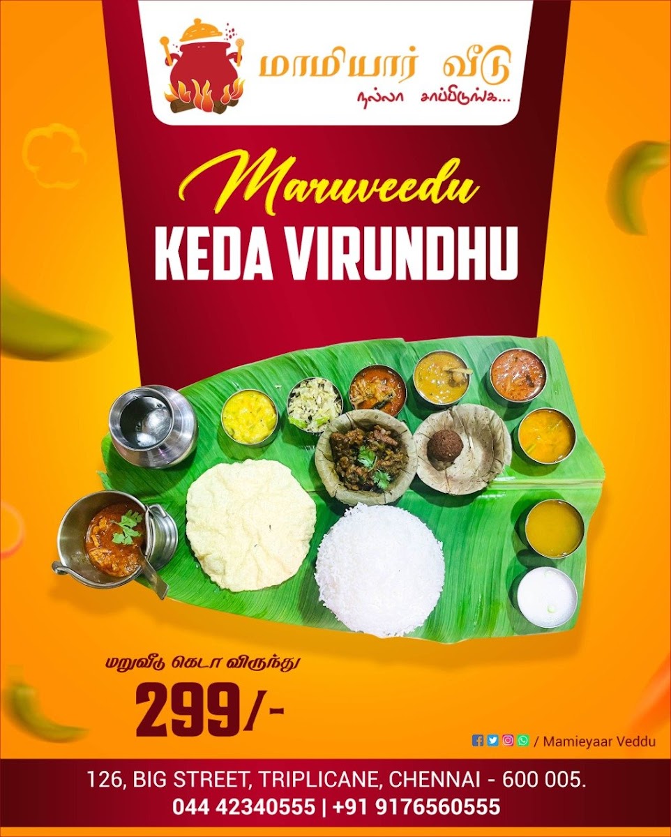 With prompt service and a welcoming atmosphere, Mamieyaar Veedu stands out as a must-visit spot for those craving a true taste of Tamil Nadu's rich culinary heritage.